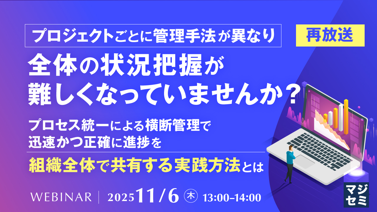 【再放送】プロジェクトごとに管理手法が異なり、全体の状況把握が難しくなっていませんか? 〜プロセス統一による横断管理で、迅速かつ正確に進捗を組織全体で共有する実践方法とは〜