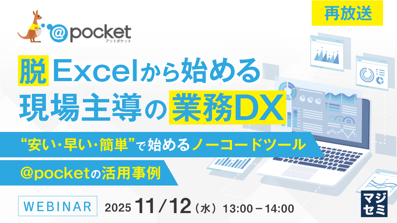 【再放送】脱Excelから始める、現場主導の業務DX ~“安い・早い・簡単”で始めるノーコードツール @pocket の活用事例~