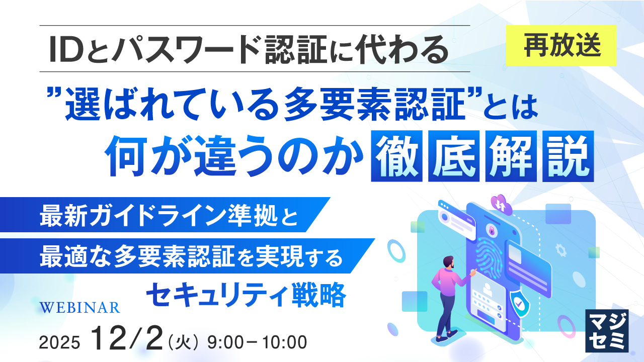 【再放送】IDとパスワード認証に代わる”選ばれている多要素認証”とは何が違うのか徹底解説 〜最新ガイドライン準拠と最適な多要素認証を実現するセキュリティ戦略〜