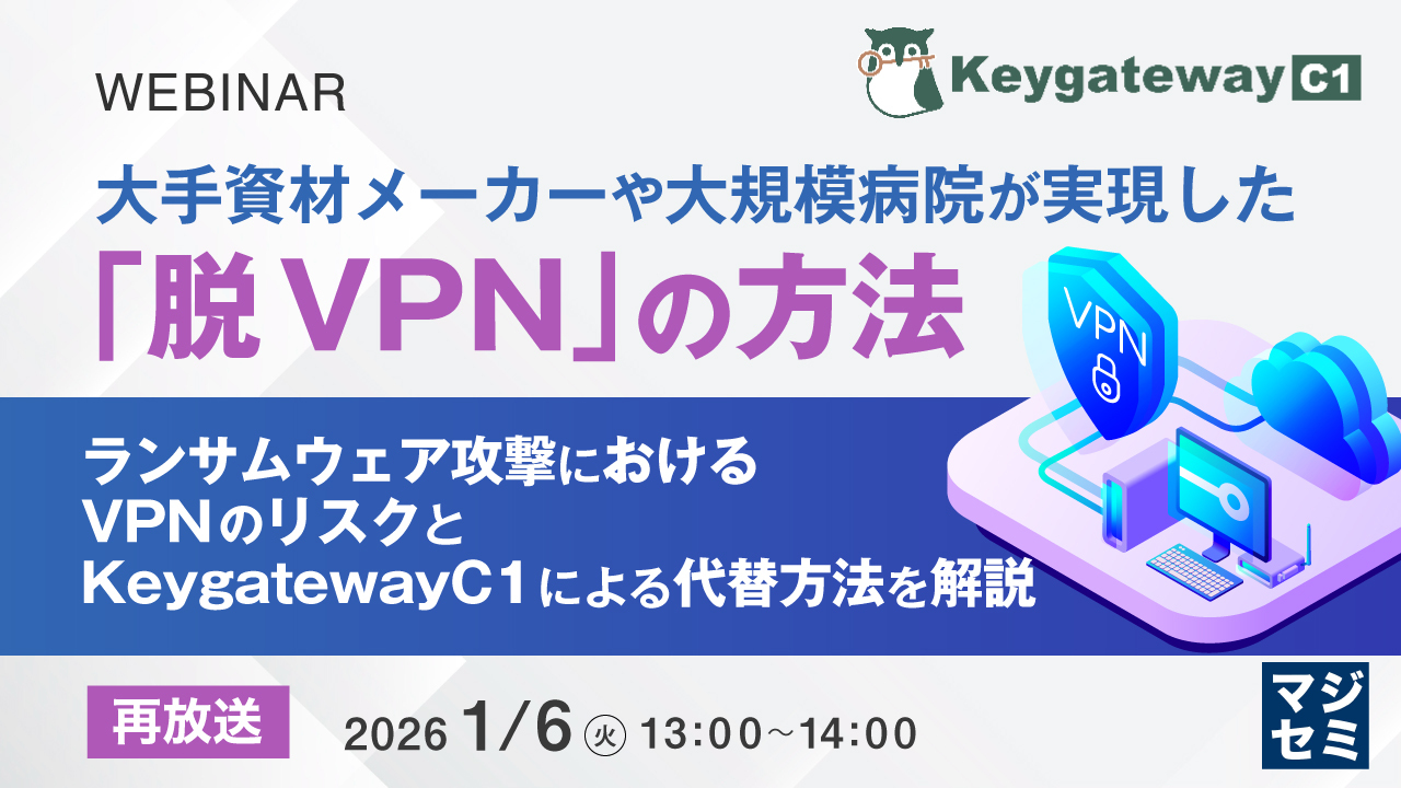 【再放送】大手資材メーカーや大規模病院が実現した「脱VPN」の方法 ~ ランサムウェア攻撃におけるVPNのリスクと、KeygatewayC1による代替方法を解説 ~
