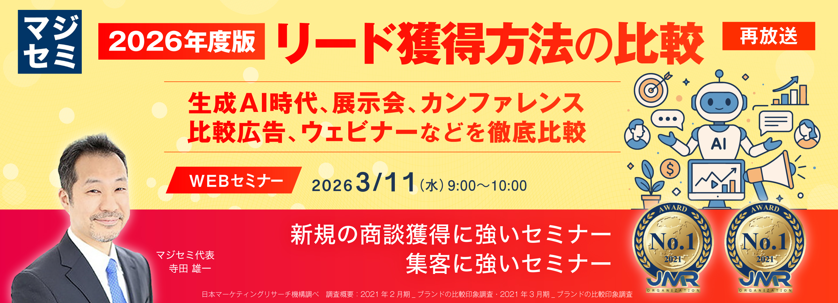 【再放送】2026年度版、リード獲得方法の比較 ~生成AI時代、展示会、カンファレンス、比較広告、ウェビナーなどを徹底比較~