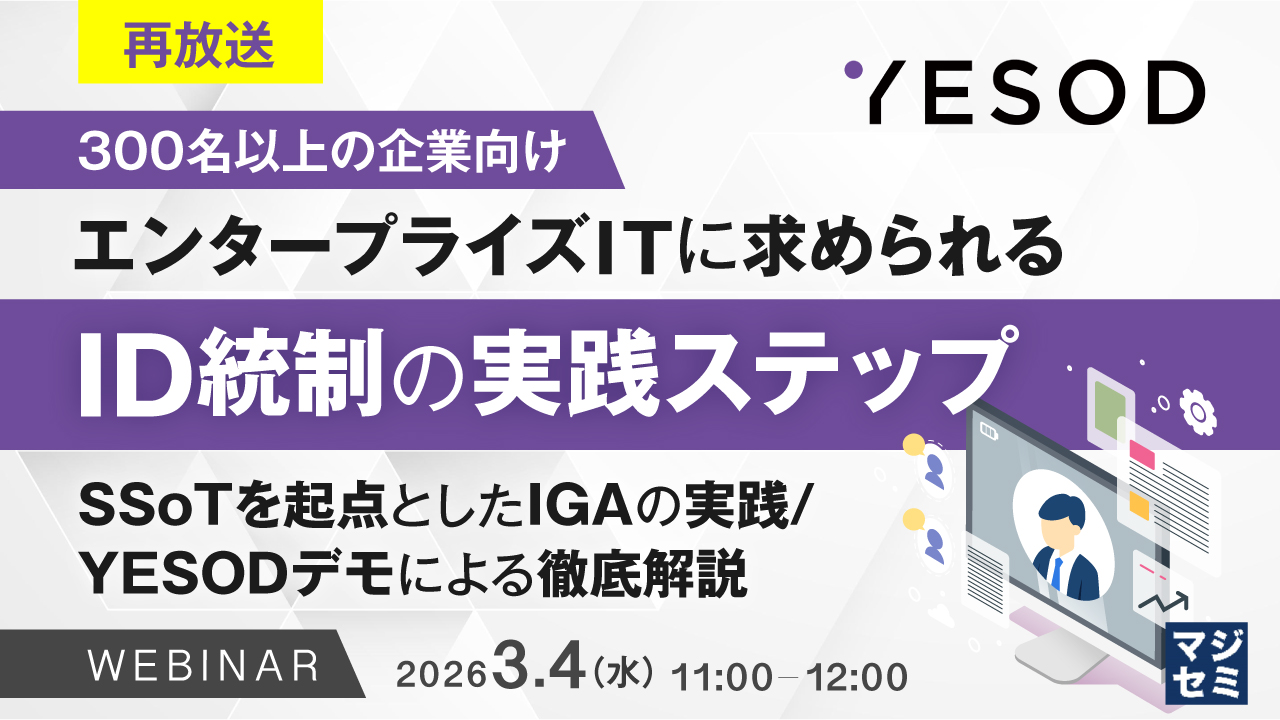 【再放送】【300名以上企業の情シス担当者向け】エンタープライズITに求められるID統制の実践ステップ 〜SSoTを起点としたIGAの実践/YESODデモによる徹底解説~