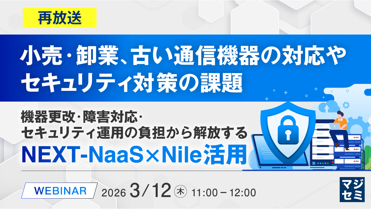 【再放送】小売・卸業、古い通信機器の対応やセキュリティ対策の課題 ~機器更改・障害対応・セキュリティ運用の負担から解放する、NEXT-NaaS×Nile 活用~