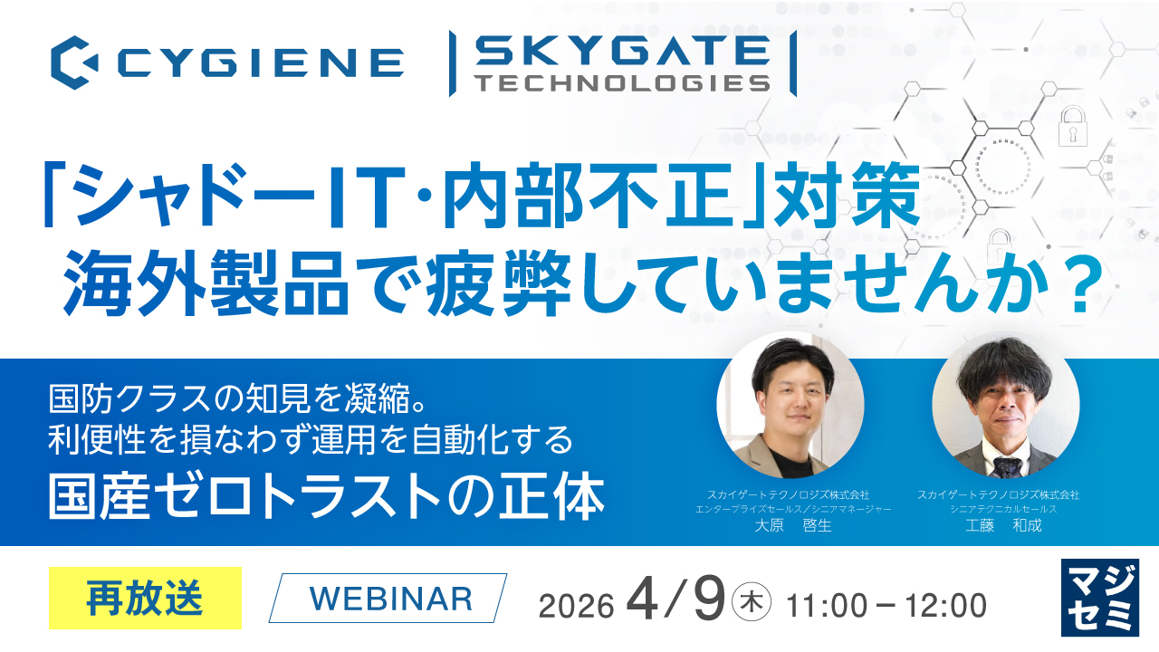 【再放送】「シャドーIT・内部不正」対策、海外製品で疲弊していませんか? 〜国防クラスの知見を凝縮。利便性を損なわず運用を自動化する、国産ゼロトラストの正体〜