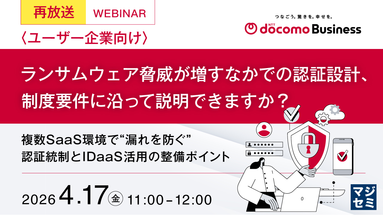 【再放送】<ユーザー企業向け>ランサムウェア脅威が増すなかでの認証設計、制度要件に沿って説明できますか? ~複数SaaS環境で“漏れを防ぐ”認証統制とIDaaS活用の整備ポイント~