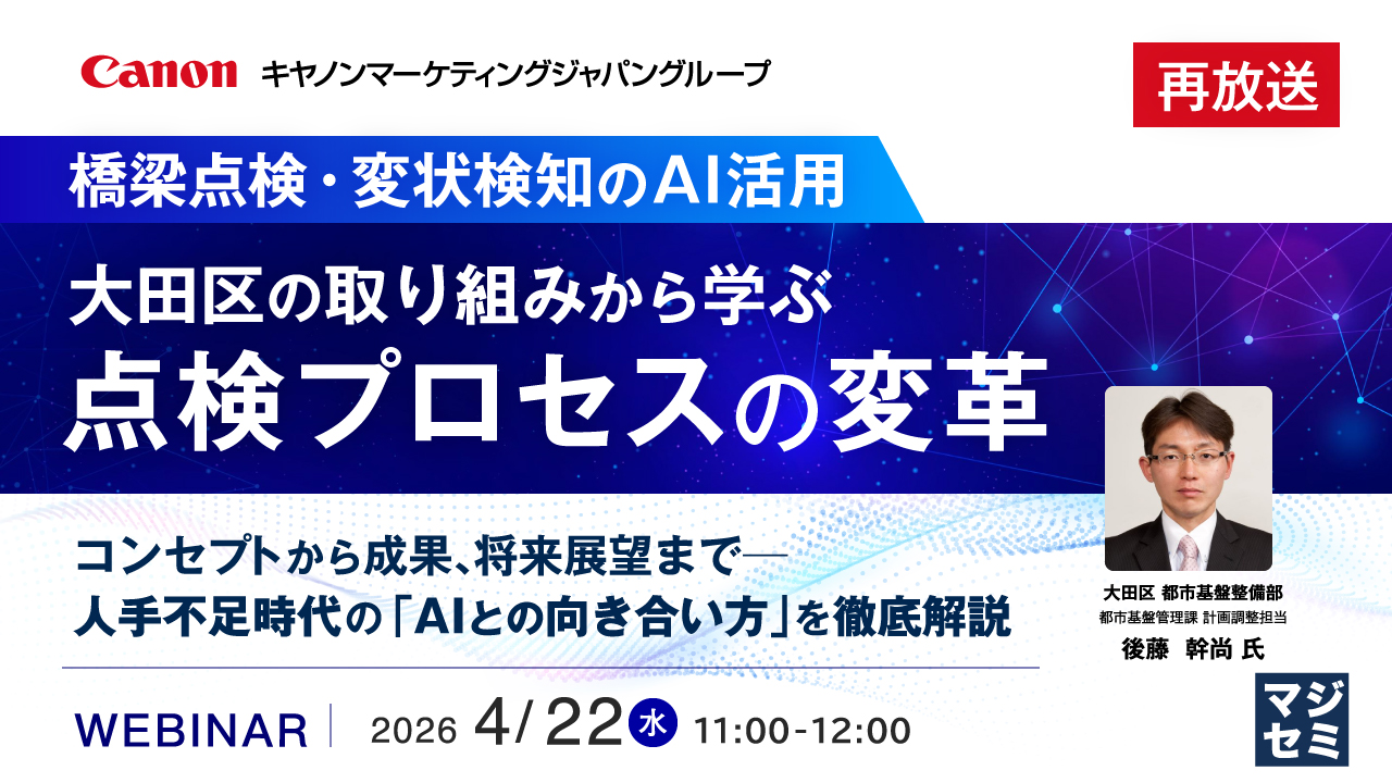 【再放送】<橋梁点検・変状検知のAI活用>大田区の取り組みから学ぶ点検プロセスの変革 〜コンセプトから成果、将来展望まで──人手不足時代の「AIとの向き合い方」を徹底解説〜