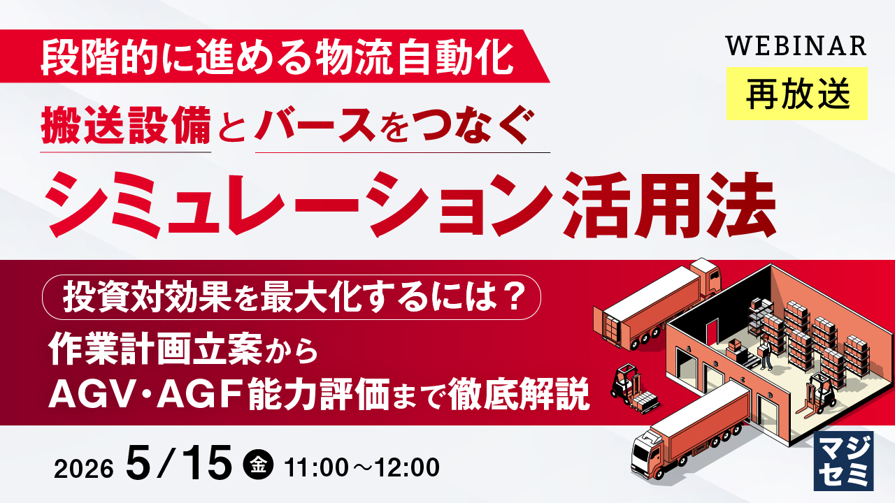 【再放送】<段階的に進める物流自動化>搬送設備とバースをつなぐシミュレーション活用法 ~投資対効果を最大化するには?作業計画立案から、AGV・AGF能力評価まで徹底解説~