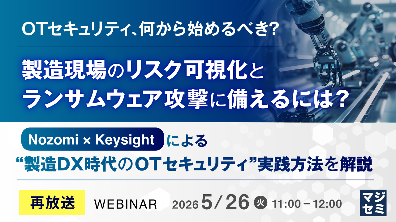 【再放送】OTセキュリティ、何から始めるべき?製造現場のリスク可視化とランサムウェア攻撃に備えるには? ~Nozomi × Keysightによる“製造DX時代のOTセキュリティ”実践方法を解説~